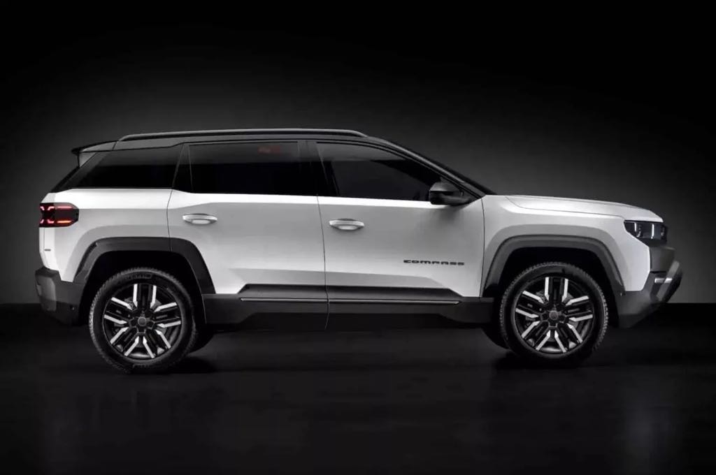 Along the sides, the Compass retains its muscular stance with squared wheel arches and a dynamic window line that kicks up near the rear quarter. This profile adds a sense of motion and sportiness to its otherwise squared-off design.