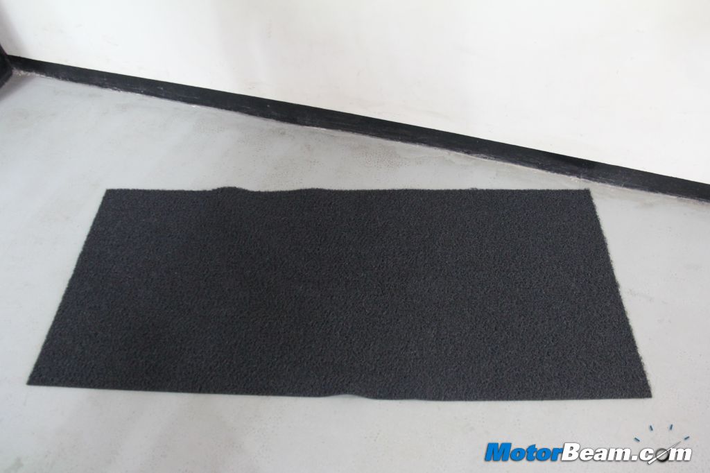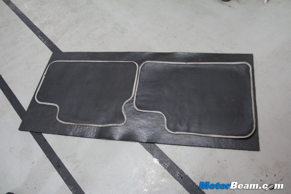 After you choose the colour, the mats are cut from a large roll. Measurements are taken for each mat and they are cut in accordance to the footwell. Before the final cut is made, the mats are tried in the car to fine tune the cutting. We were given the option, if we want the rear mat in a single piece or the conventional three piece. We opted for a single large mat. In some cases, where the transmission hump is too high, a three piece cut is recommended for better adaptability to the floor.