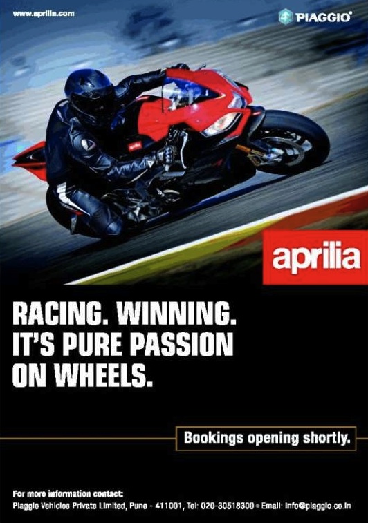 Piaggio has started taking bookings for the Aprilia RSV4 Factory in India. The RSV4 Factory has been priced at Rs. 13 lakhs for the base variant and Rs. 18 lakh for the top end variant. The RSV4 Factory deliveries will start by the end of next month. The company is very positive about the sales of its superbikes and will introduce the Vespa brand of scooters in 2012 to capitalise on the growing two-wheeler market in the country.