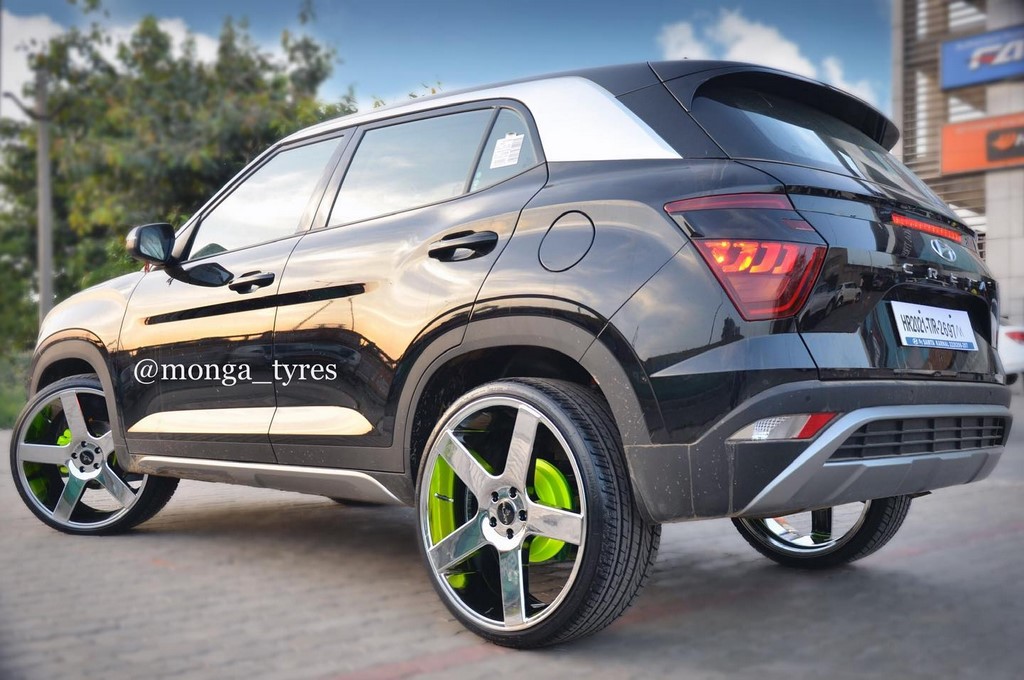 Fitting aftermarket alloys to cars is not new, but this Hyundai Creta has been fitted with not 18- or 19-inch rims, but very large 22-inch ones.