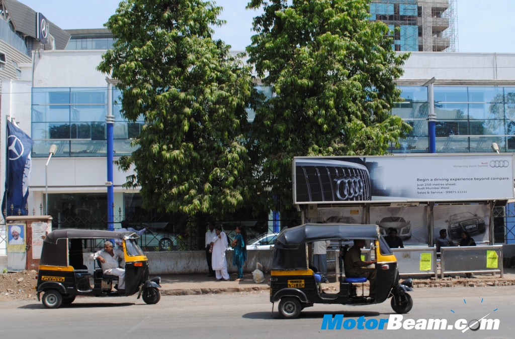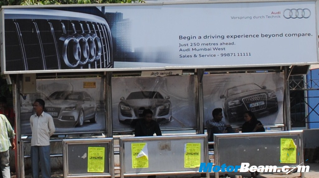 The Germans are famous for pulling out advertisements near their competitors showrooms and this time its Audi who has pulled a neat trick on Mercedes. As can be seen in the pictures, Audi has plastered advertisements on a bus stop right in front of a Mercedes-Benz dealership in Mumbai. We will certainly not call this coincidence, not after this.