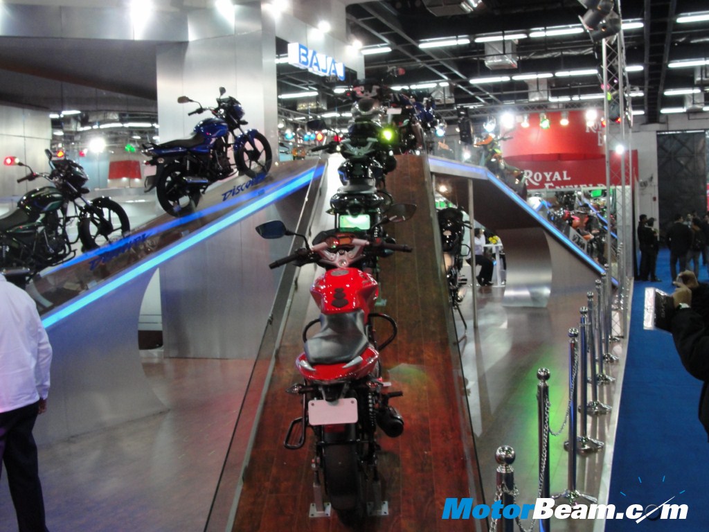 Bajaj Auto is showcasing its complete product line from all its brands – two wheeler, KTM, Kawasaki and RE at the Auto Expo. Their stall was setup up in a unique way with all the bikes facing the skies. What was striking though was the KTM 990 Super Duke and KTM 690 Supermoto amongst the Pulsar siblings. The Kawasaki Ninja as always drew a lot of attention from passers by. Bajaj hasn’t unveiled or shown any new concept at this Expo and we were disappointed to find no Concept Pulsar 250/350 at their exhibit.