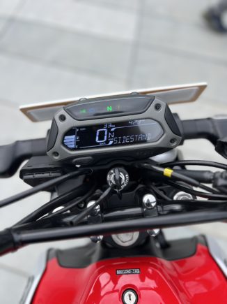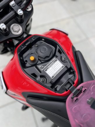 The CNG tank capacity is about 12.5 litres or 2 kgs and that itself weighs about 16 kgs. The CNG tank sits below the seat and is extended all the way below the fuel tank. CNG is the primary fuel for the Bajaj Freedom while it has a 2 litres tank for petrol as well for limp-home.