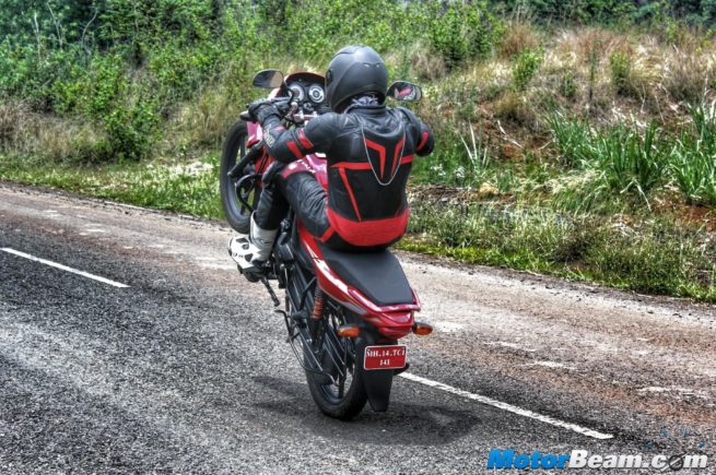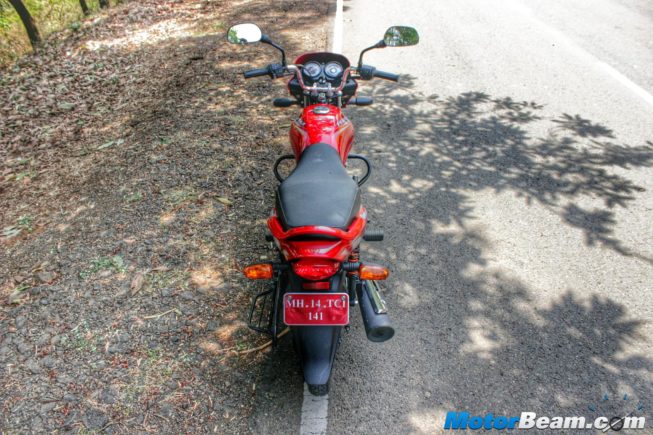 The Platina 100 is a highly comfortable motorcycle, for both, the pillion and the rider. The foot-pegs for both the occupants are front set, resulting in a relaxed seating position. The handlebar is propped up at an angle that further amplifies comfort. The seat height is 804 mm, a height that is practical for riders of all builds. The seat itself is a single piece, meaning it’s not split and also very soft. The low kerb weight of 116-119 kg also contributes to a comfortable riding experience.