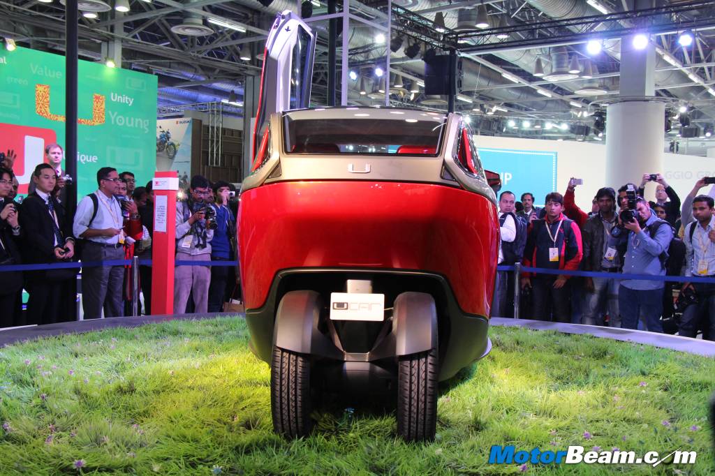 Even though the U Concept is a 4-wheeler, it is meant to be a 2-seater due to its compact dimensions. Heck it weighs just 300 kgs. Maybe we can call it a motorcycle with doors and four wheels. The engine powering the U concept is similar in specs to the one that powers the RE60 but this one uses an automatic gearbox. Another interesting thing is the scissor doors on the concept vehicle. It is very likely that the production version won’t feature these.