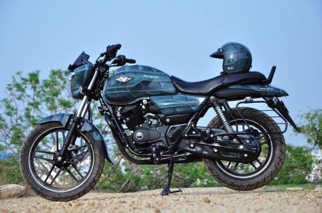 Hyderabad based tuning house Eimor Customs has given the Bajaj V15 a completely new paint job, which pays further homage to the crew who made the INS Vikrant, the formidable air craft carrier that is was. They have named the custom Bajaj V15, V – The Invincible, and added detailing related to the INS Vikrant.