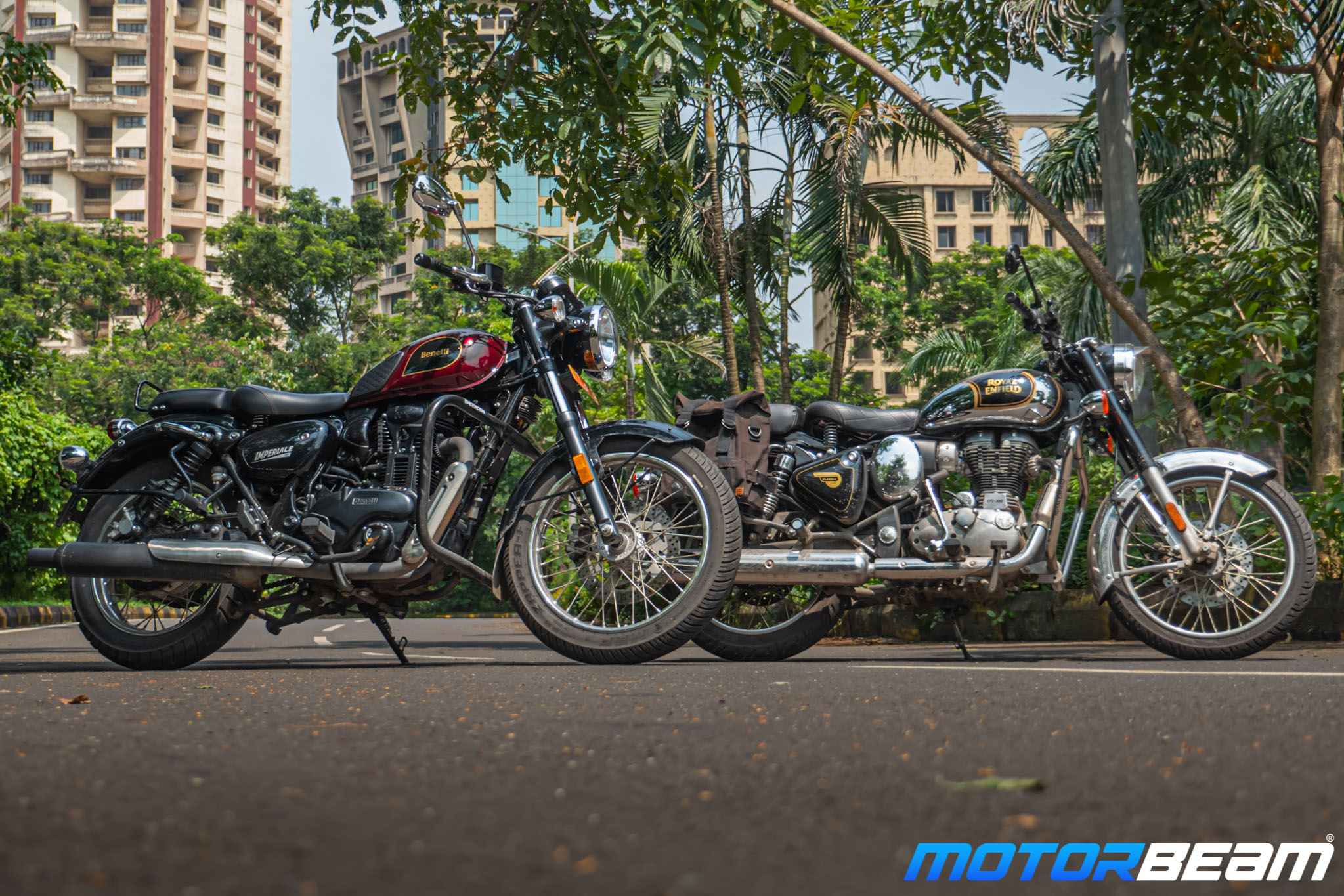 Price OTR Mumbai: Rs. 2,20,629/- (RE Classic 350); Rs. 2,44,837/- (Benelli Imperiale 400)