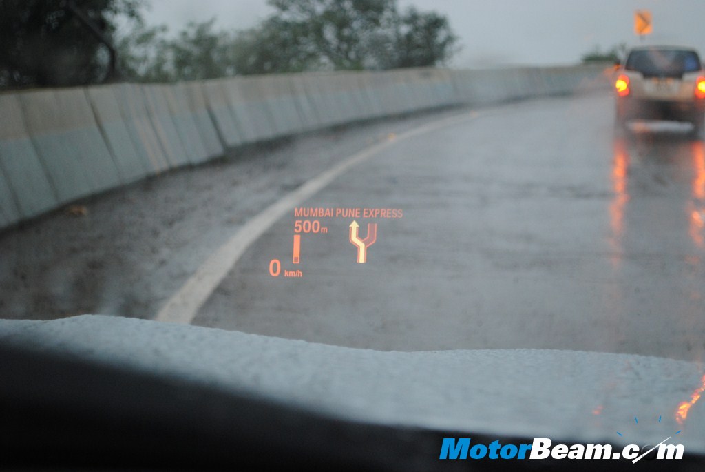 HUD or Heads up Display was first used for military aviation purpose wherein the pilot would have all the information without taking his eyes of the horizon, the same feature is now available in commercial aircrafts and high end automobiles. The HUD projects the data on the front windshield, visible only to the driver. Navigation is seamless as shown in the picture. The best part is that your passengers won’t have a clue if you are using the navigational aids once you turn off the voice guiding feature.