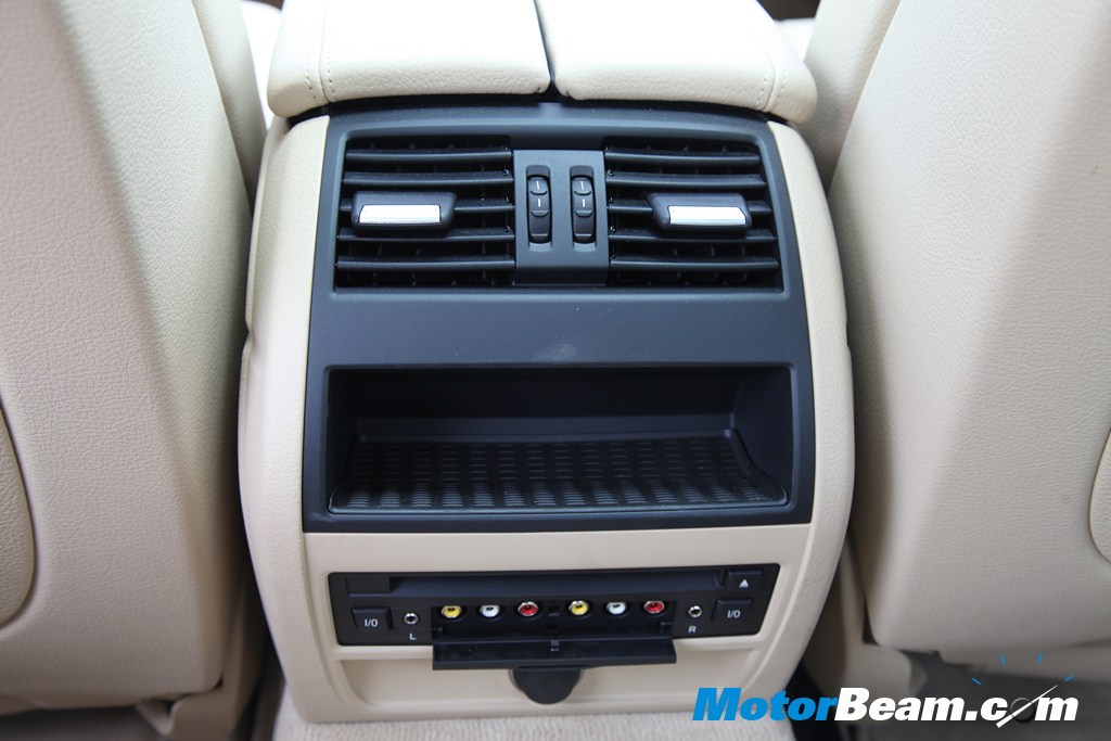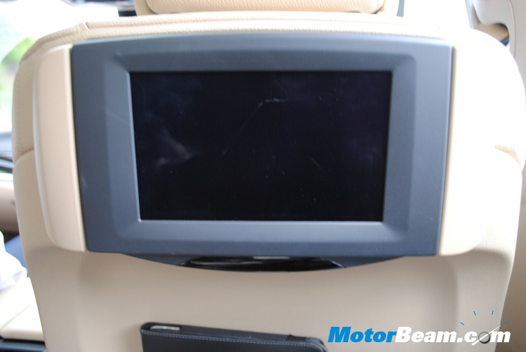 A DVD player is located in the central , console. Passengers can attach individual earphones and can enjoy music, videos etc from the iDrive or from their portable players through the RCA port.