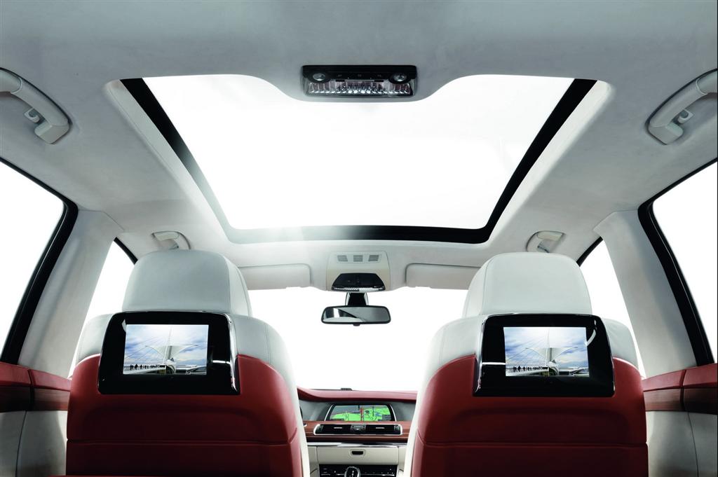BMW 5-series Gran Turismo Concept PAS Open the pillarless doors and you’ll find a four-seat layout and a panorama glass roof with BMW promising that the GT offers the passengers at the rear the same legroom as in the BMW 7 Series and virtually the same headroom as in the X5 SUV.