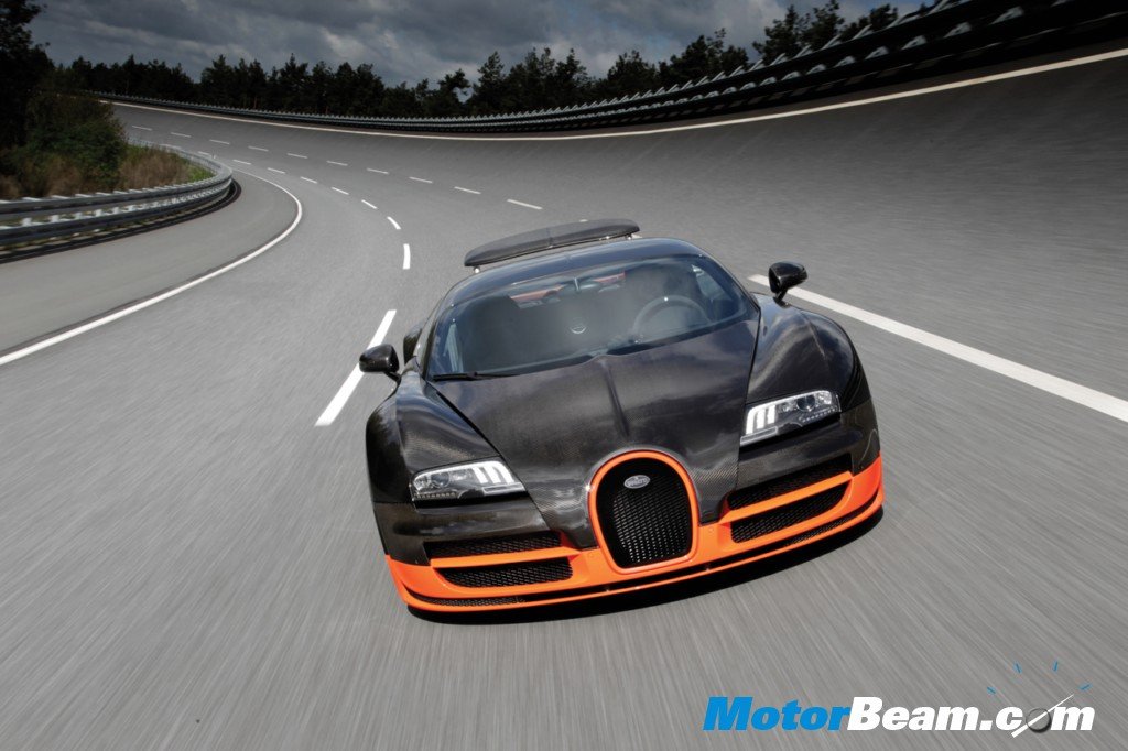 The new Bugatti Veyron 16.4 Super Sport has achieved a new landspeed world record for production cars, on the proving grounds of the Volkswagen Group at Ehra-Lessien (nearby its headquarters at Wolfsburg). In the presence of the German Technical Inspection Agency (TÜV) and a representative of Guinness Book of Records the Super Sport achieved an average top speed of 431 km/h. The Bugatti Veyron 16.4 Super Sport boasts of high performance of 1,200-hp (882 kW) offering experienced drivers a whole new dimension of excitement, with a maximum torque of 1,500 Newton metres and a limited top speed of 415 km/h (to protect the tyres) but, the technique of the Super Sport is identical to the record car. The first five Super Sports to come off the production line will constitute a special series of their own, with the same configuration as the landspeed record car.