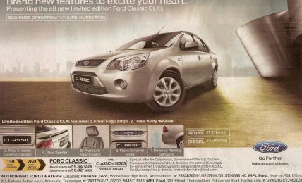 The Ford Classic which was earlier known as the ‘Fiesta Classic’ has been launched with a host of seven new features in a limited...