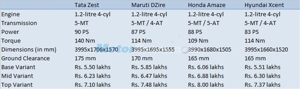 Zest vs Amaze vs Xcent vs DZire – Variant Wise Price Comparison