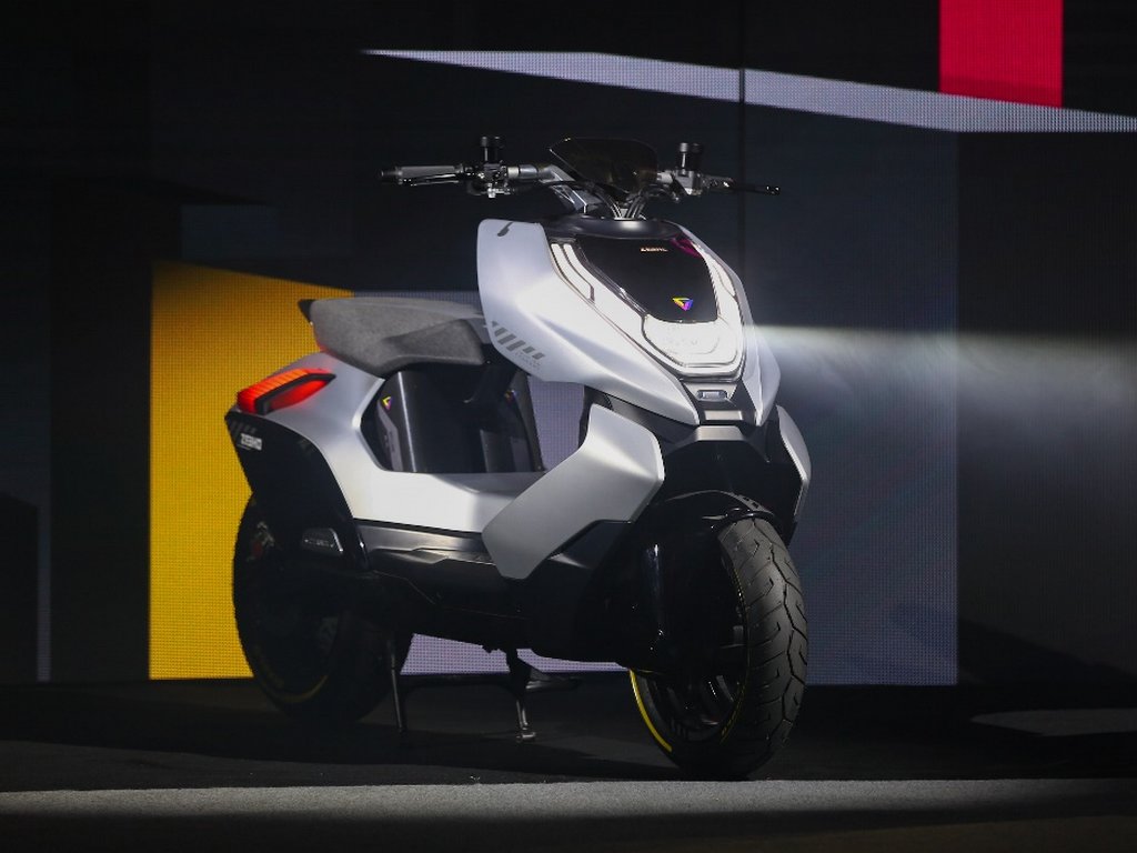 Developed as a stylish electric scooter, the concept has nice body lines, LED headlight, a short seat, thick centre tunnel and unique tail lights.