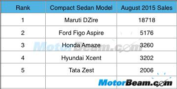 The compact sedan segment has found a new member, the Ford Figo Aspire that has taken the second spot directly in its debut month.
