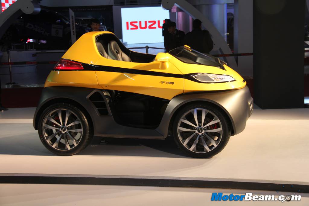 Now looking at the pictures I don’t know whether it is a hatchback or a quad bike or a quadricycle. But since our editor has said it’s a hatchback, lets call it that. Now the usual stuff, this is a very futuristic looking vehicle and aimed at the youth. The design of the headlights and the side profile looks very sleek but the overall body is curvy.