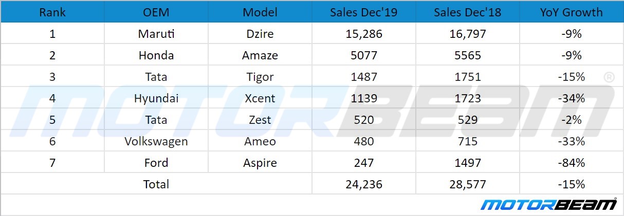 – Maruti Dzire continues to rule the compact sedan segment