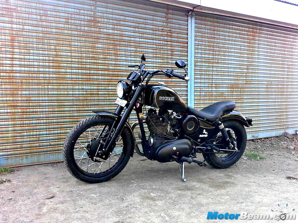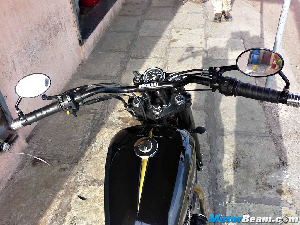 On the design front, Dochaki has increased the overall length by 4-inches, while adding a hand crafted fuel tank, side panels, new round shaped air filter, battery cover and a new seat. Also new are the front shock absorber mountings, custom made handlebars, bar end mirrors, meter mounting box and a smaller but more powerful headlamp unit. The brake lights have been upgraded to LEDs and blinkers, whereas the frame has been customised to accommodate the lowered seat height. Lastly, the owner can customise the rear shock absorber as per his comfort, while there is a new rear support added for improved pillion comfort.