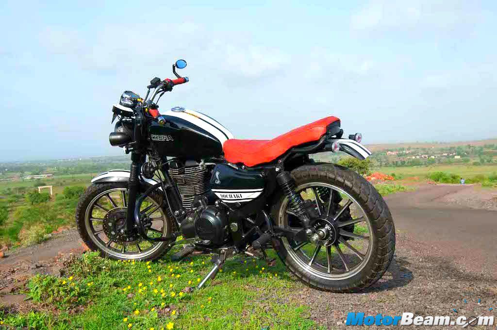 The Dochaki scrambler gets a dual headlight, LED tail light, scrambler styled seat customised for urban conditions, racing stripes and pillion grab handles located below the rear seat. There is also the inclusion of a performance exhaust mounted at an inclined position to stay clear off the rough terrain. The scrambler further gets a straighter and shorter handlebar for better control. The bike rides on alloy wheels wrapped in tubeless tyres with big treads.
