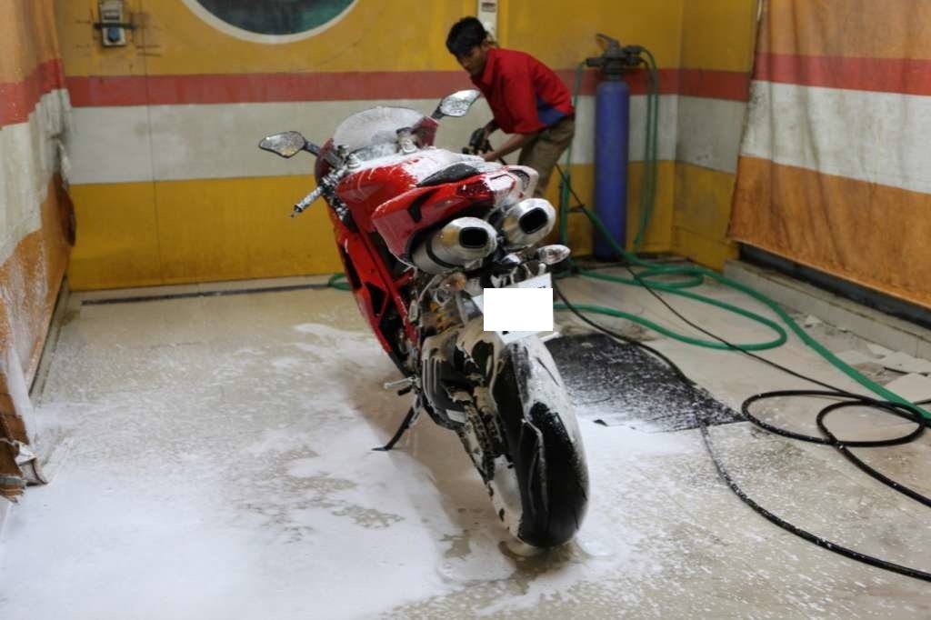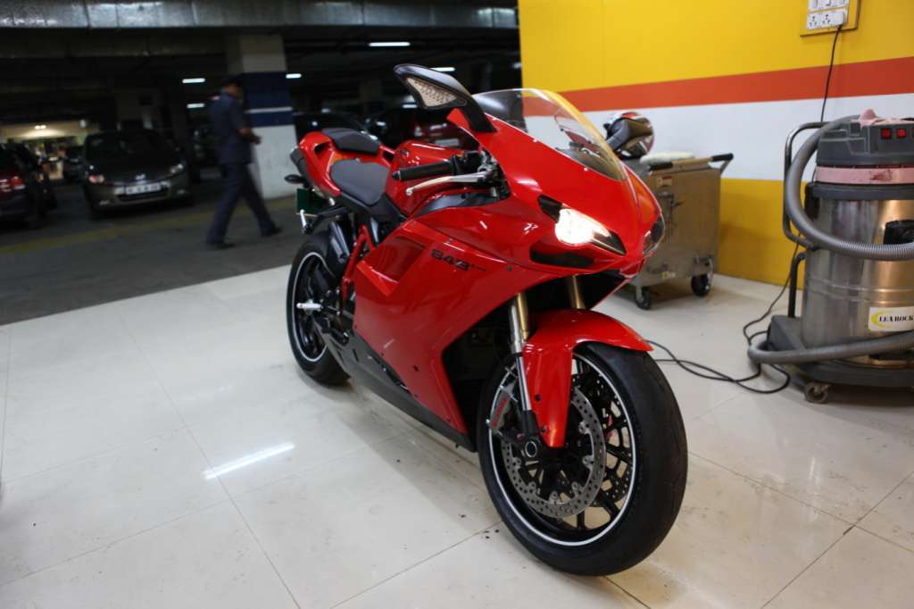 Ducati is the equivalent of Ferrari on two-wheels, so undoubtedly the word red and gorgeous get easily associated with the company. What your going to see is totally going to make you go crazy. A Ducati 848 Evo being washed. The location seems to be Inorbit mall in Mumbai, where there is a car/bike cleaning and polishing shop. These pictures were sent to us by Rakesh. How does the 848 Evo look in the pictures? Absolutely stunning we say!