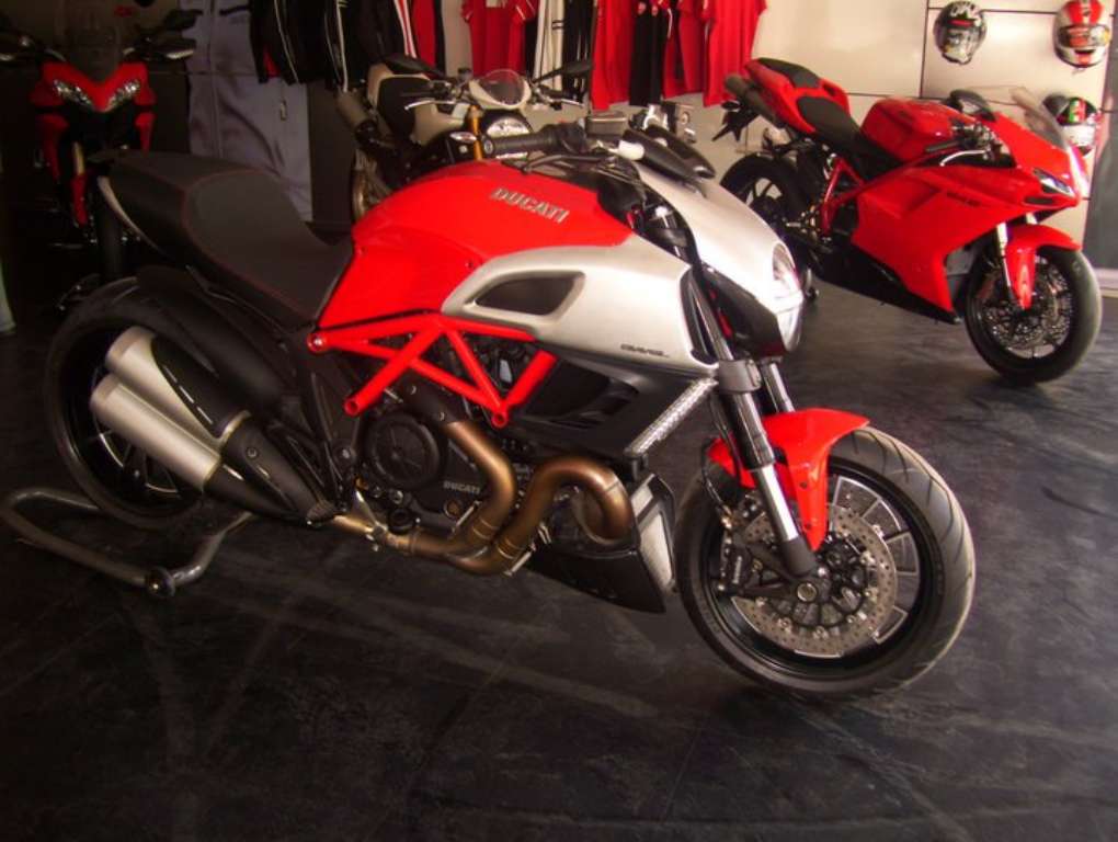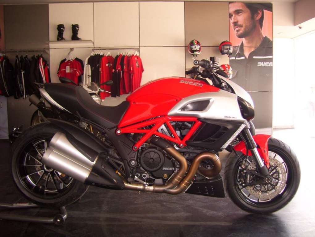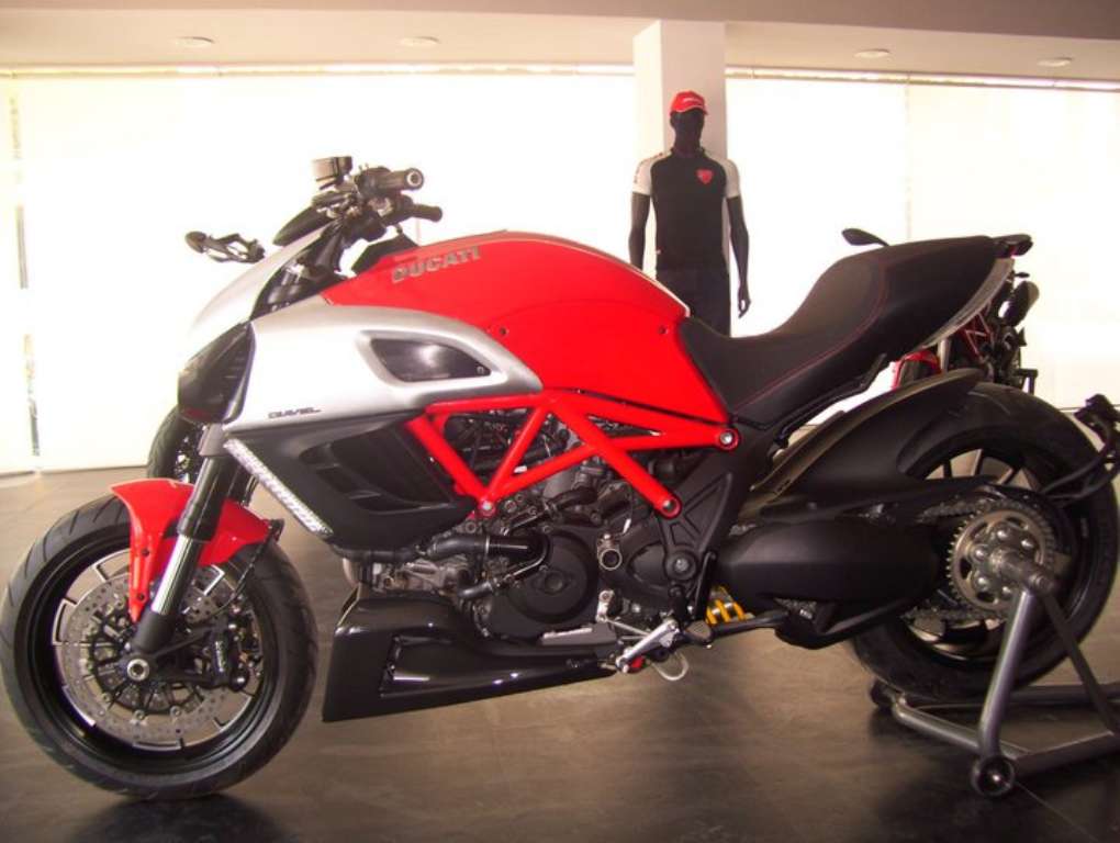 The upcoming Ducati 848 Evo and Diavel have finally reached India. To be launched in April, 2011, the bikes were showcased in Ahmedabad by the Ducati showroom there. The 2011 Ducati 848 Evo features a 850cc engine and produces 140bhp of power and 98Nm of torque. The 848 Evo will have a starting price of Rs. 12,50,000/-. The Diavel is powered by a 1200cc engine producing 165bhp of power and 127.5Nm of torque. The Diavel will be priced at Rs. 18 lakhs, whereas the Diavel Carbon will be priced at Rs. 22 lakhs (all prices, ex-showroom).