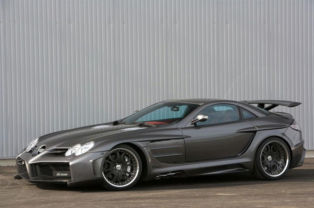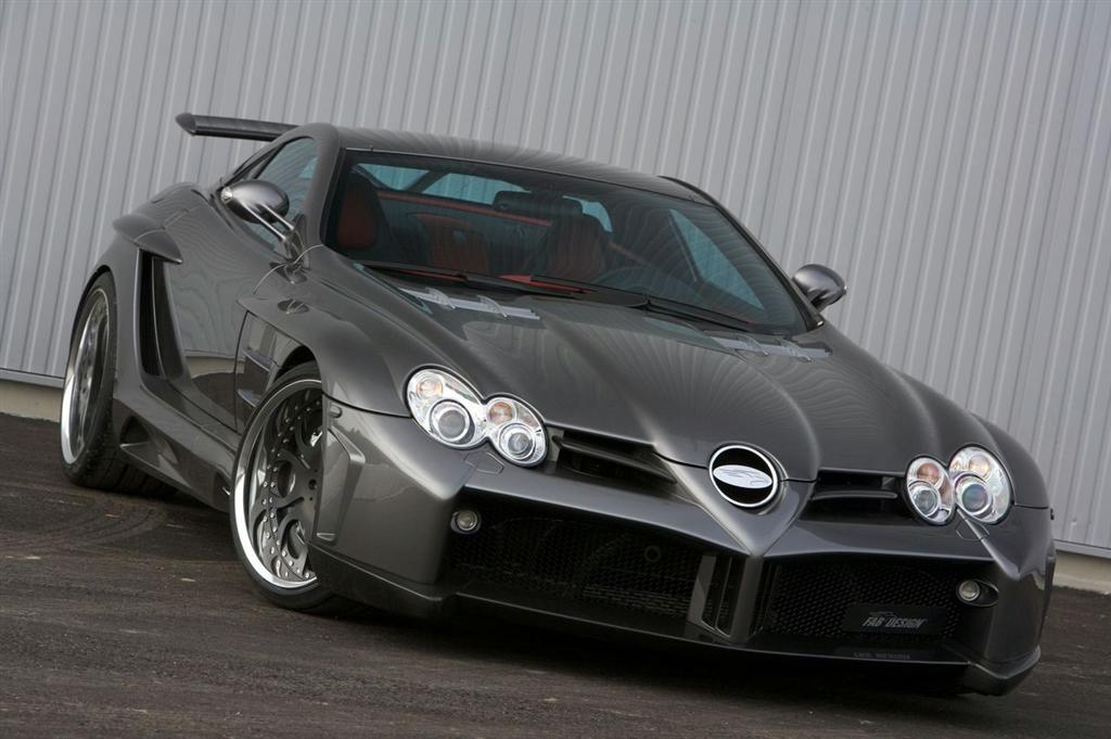 FAB Design has turned the McLaren SLR into a race car with the SLR McLaren Desire. As seen here, the noDesire SLR gets numerous aerodynamic changes including an extra large rear wing and with the show there has been extensive modifications to the SLR McLaren under the hood. This gives the SLR Desire about 750 hp and 1080 Nm of torque, with 0 – 100 kmph in 3.6 seconds and a top speed of 310 kmph. The standard McLaren SLR (with 626 hp and 780 Nm of torque) has been restyled by the use of ultra-light carbon fiber materials which FAB Design claims is as advanced as anything in use in Formula One or the aerospace industry today.