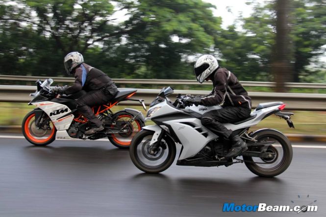The only bikes that come close to beating the RC 390 in a straight fight are the Kawasaki Ninja 300 and Yamaha R3. The former being roughly Rs. 50,000/- dearer (even after being locally assembled) still isn’t as fast as the RC whereas the latter is on the verge of being discontinued. Although the older Ninja 300 will probably beat the current-gen RC 390 in a top-speed run, the RC will still edge it till 140-150 km/hr.