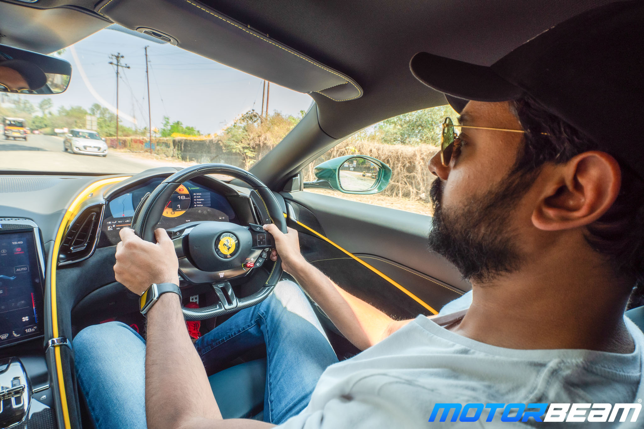 Driving Dynamics – The Roma comes with 5 drive modes – Wet, Comfort, Sport, Race and ESC off, you can toggle them using Ferrari’s convenient Manettino switch on the wheel. The modes alter the engine, gearbox, dampers and steering feel, offering a more rapid power delivery with lesser intervention as you go up the modes. With power being channelled to the rear wheels, traction breaks quite fast as you go hard on the throttle in Sport mode, all thanks to the far from perfect roads of India.