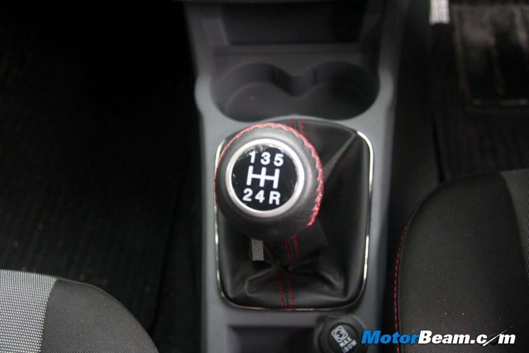 The gear lever too gets red stitching, which again goes unnoticed most of the time. The gearbox is not the smoothest around and feels notchy at times, although rarely does it refuse to slot into the gear you want it to. Seats are comfortable and offer decent support, but are a bit hard for our liking.