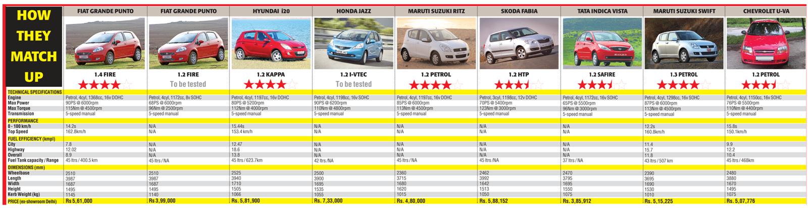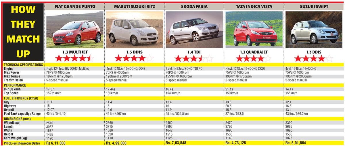 The Fiat Grande Punto has redefined the B+ segment with the level of equipment at competitive prices. However how does the Grande Punto fare against the competition? Votes by Motorbeam readers suggest they would pick up the Grande Punto over other cars in the segment. The Swift came a close second, which was quite a surprise. Zigwheels has made a very interesting chart for both the diesel and petrol variants which shows how the cars match up.