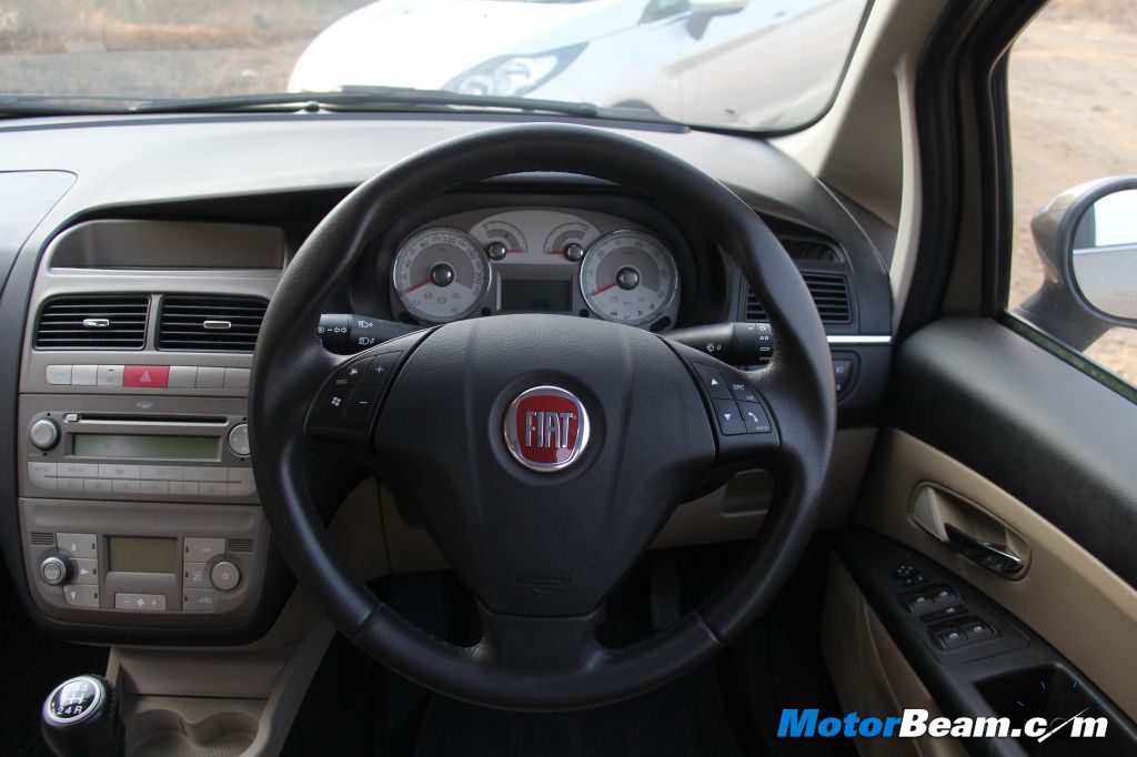 Quality levels on the Linea are very good and Fiat has done a fantastic job to ensure everything feels solid and well put together. The doors are heavy and close with a solid reassurance. You feel you are sitting inside a tank with the car offering a vault like feeling. The contours on the steering wheel making it great to hold and the size of the 3-spoke unit is spot on too. However that buttons on the steering wheel feel a bit hard to use but it’s more about getting used to. The Blue&Me system works very well and making calls is a breeze. Comfort levels in the Linea is very good including decent space for rear seat passengers. The boot too can swallow quite a bit of luggage. The small attention to detail on the Linea pleases us everyday, like the perfectly located switches on the driver side door and the twin blade wipers which not only work fabulously but also swipe back after a few seconds to ensure no water residue is left. The automatic headlights are another boon in this car.