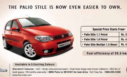 “Company would launch a CNG version of the Palio in 2009. This initiative is in line with the Indian automotive industry’s move to shift to environment-friendly fuels, which promise less operating cost and lower emissions. For instance, Indica, Santro, Wagon R, Ikon and Marina have both CNG and LPG options.” said Mr Rajeev Kapur, CEO, Fiat India.