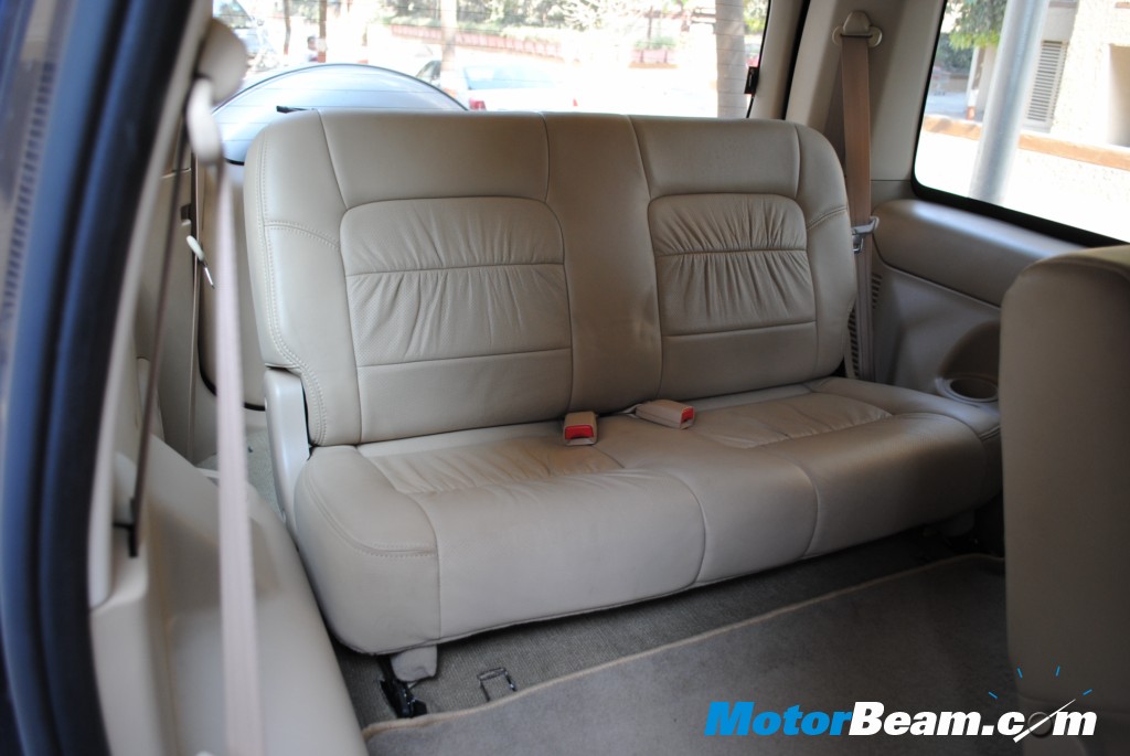 The Ford Endeavour hosts clean and simple black/beige interiors with leather seats and upholstery. Lots of storage space with abundant cup holders for all the passengers. The Endeavour does not come with automatic climate control, which is rather strange for a car of this price. However the AC is powerful and cools the entire cabin swiftly. Vents are provided in all the rows and the rear AC can be switched on by flicking a button next to the steering wheel.