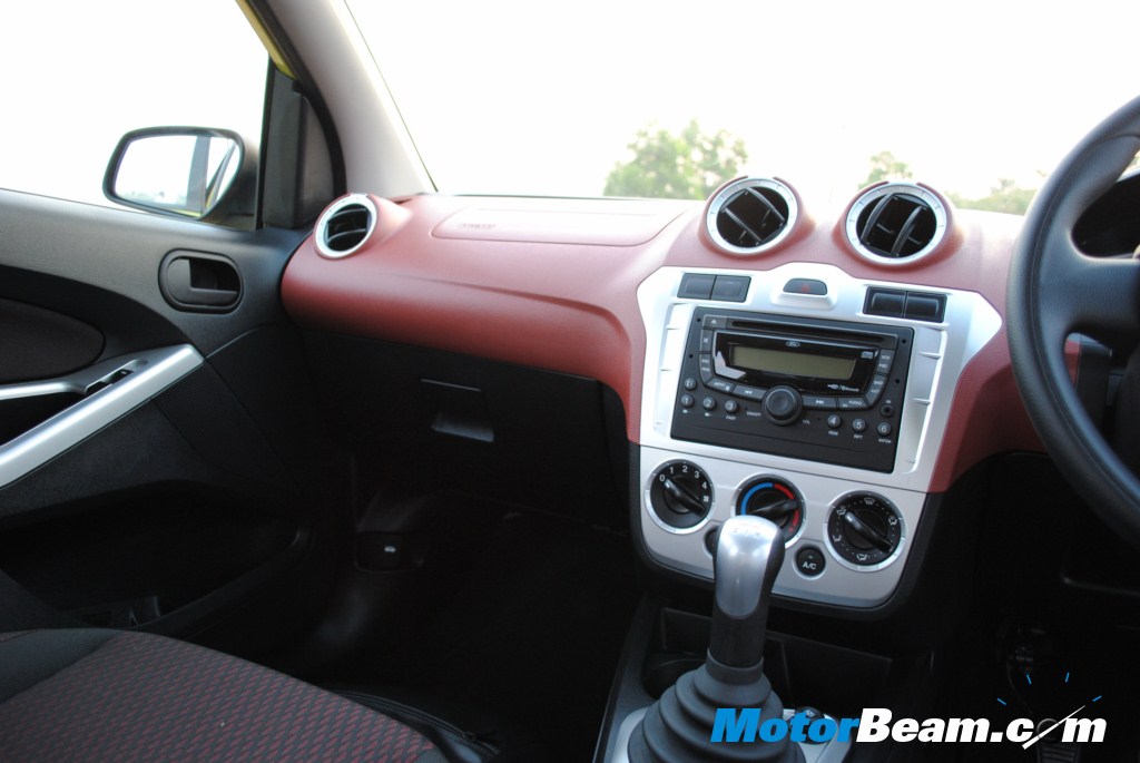 Interiors – Ford had kept the interiors a huge mystery till the press drives and although there was suspense, we guessed the interiors would draw cues from the Fiesta. However we were a little surprised when we saw the coral colours used on the dashboard. The Figo design team must have spend endless hours in getting that shade, we are sure many would prefer plain and simple black (yes Ford lets you choose the colour of your dashboard on the Figo [Thank God for small mercies]).