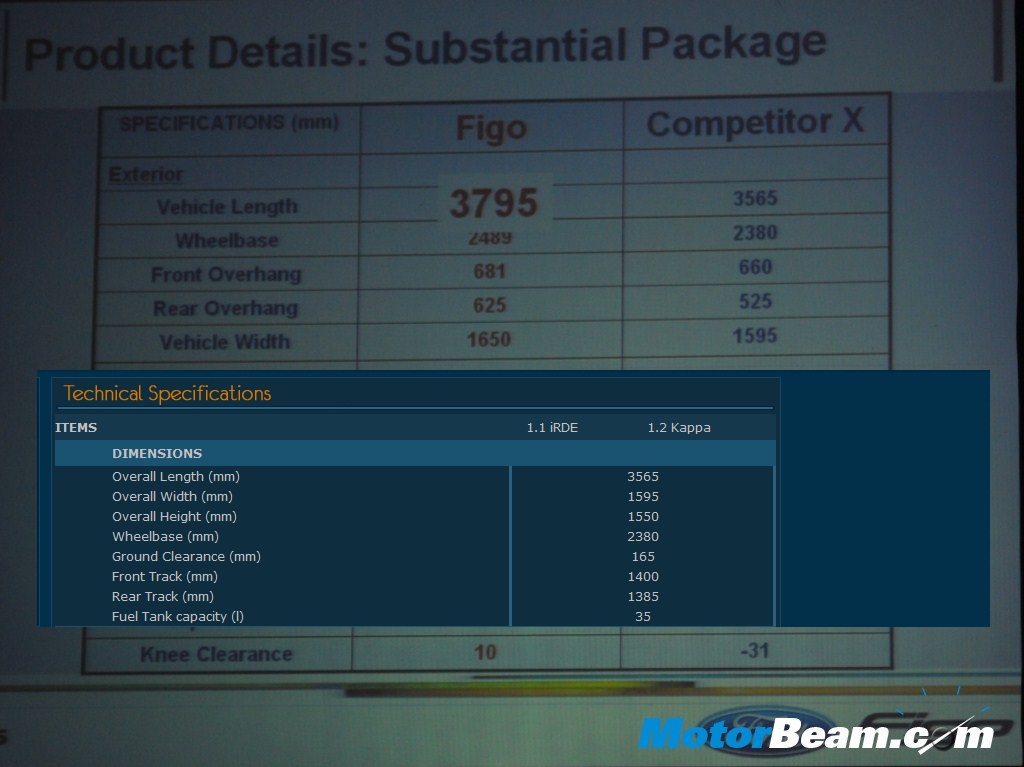 Conclusion – With the Figo, Ford means business and it is quite evident in the way the car has been designed. Earlier on Ford cars were expensive to maintain and this is something which doesn’t hold true for new generation models. The company has insured low cost of ownership by adopting a new cost effective design approach. The Figo will be available in four variants – base, mid, high end (platinum) and optional pack high plus (titanium). Other than having fantastic driving dynamics, the Figo boasts of many standard features on a small car such as dual airbags, ABS, audio system with AUX, electrically adjustable rear view mirrors, distance to empty indication, adjustable drivers seat, fold down rear seats, lane departure signal and rear wiper/defogger. Pricing has not been disclosed yet but the presentations displayed by the company prior to the press drives clearly hints at the Hyundai i10 to be a competitor (as can be seen in the picture above). If that is an indication of the pricing, then Ford India has a sure shot winner in its portfolio.