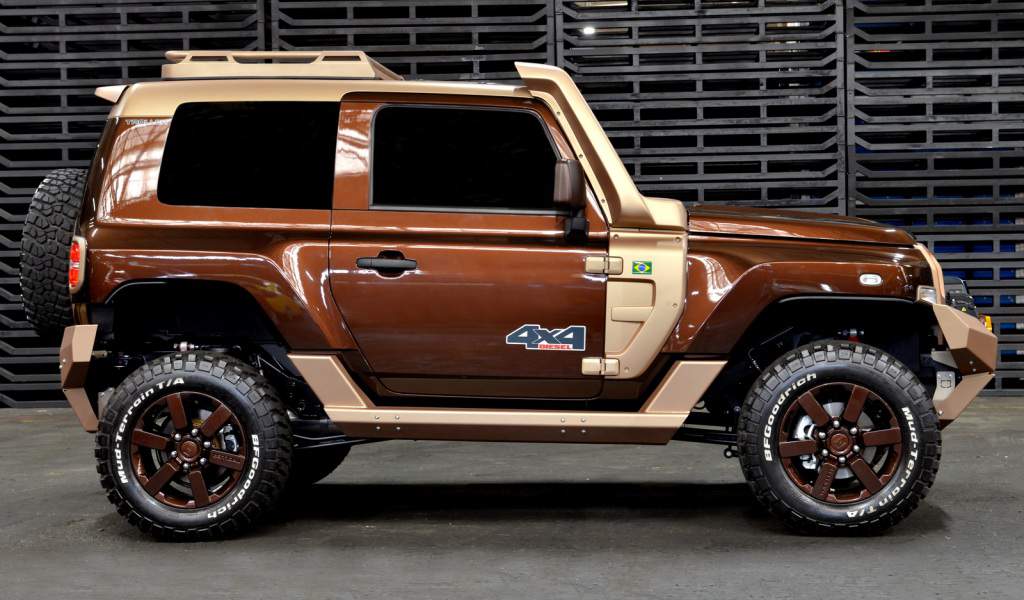 Ford has unveiled the new Troller T4 concept SUV that will make its public debut at the Sao Paulo Motor Show set to commence in Brazil from tomorrow. The new concept is based on the Ford Troller T4 SUV and packs in a host of off-roading accessories that lend an aggressive appeal to the SUV, while also enhancing its all-terrain capabilities. Starting with the list of additions, the new T4 concept comes with a snorkel, winch, steel chest, front and rear bumper and new mud terrain off-road tyres. Accentuating the custom themed look, the Troller T4 Concept is done up in a dual-tone light and dark brown paint scheme, while the alloy wheels are finished in a dark metallic brown shade.