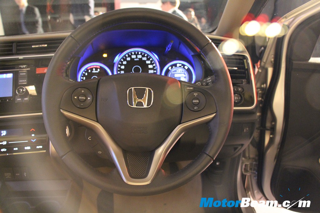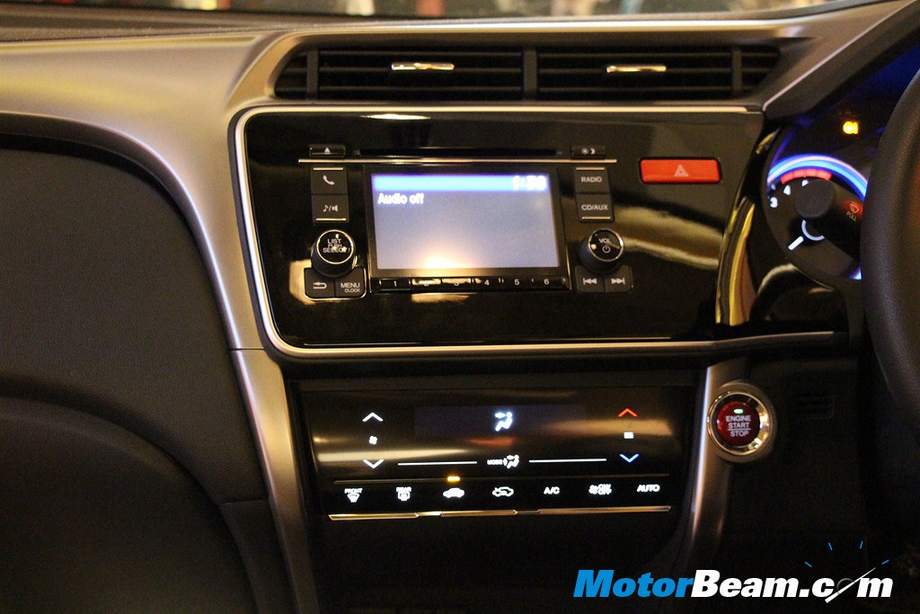 The new Honda City gets a range of features including a 5-inch LCD display which offers Bluetooth connectivity along with the usual audio outputs. There are four power outlets in the car and the top-end variant gets touchscreen controls for the AC, rear AC vents, cruise control and a sunroof.