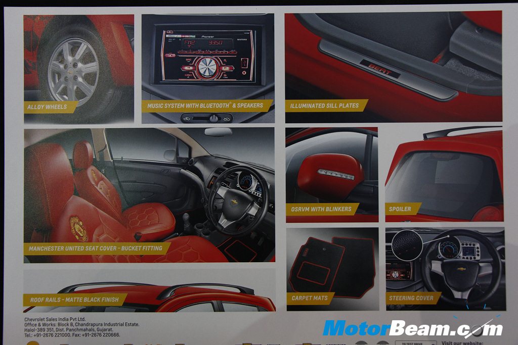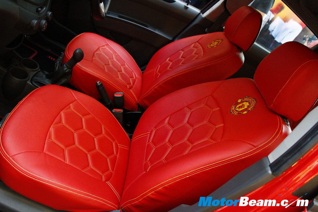 Being the official automotive sponsor of the club, Chevrolet has introduced the special edition Beat and Sail U-VA all wrapped in the club’s theme along with several other tweaks for a sporty look. The cars are done up in Manchester United’s distinctive red livery (Super Red in Chevrolet speak), coupled with stylish decals and the club’s signature imprinted on the front hood, rear door and fender as well as ORVMs. The roof panel is done up in gloss black and gets contrasting red coloured roof rails. The car also gets stylish new alloy wheels that complete the exterior look of the special edition model.