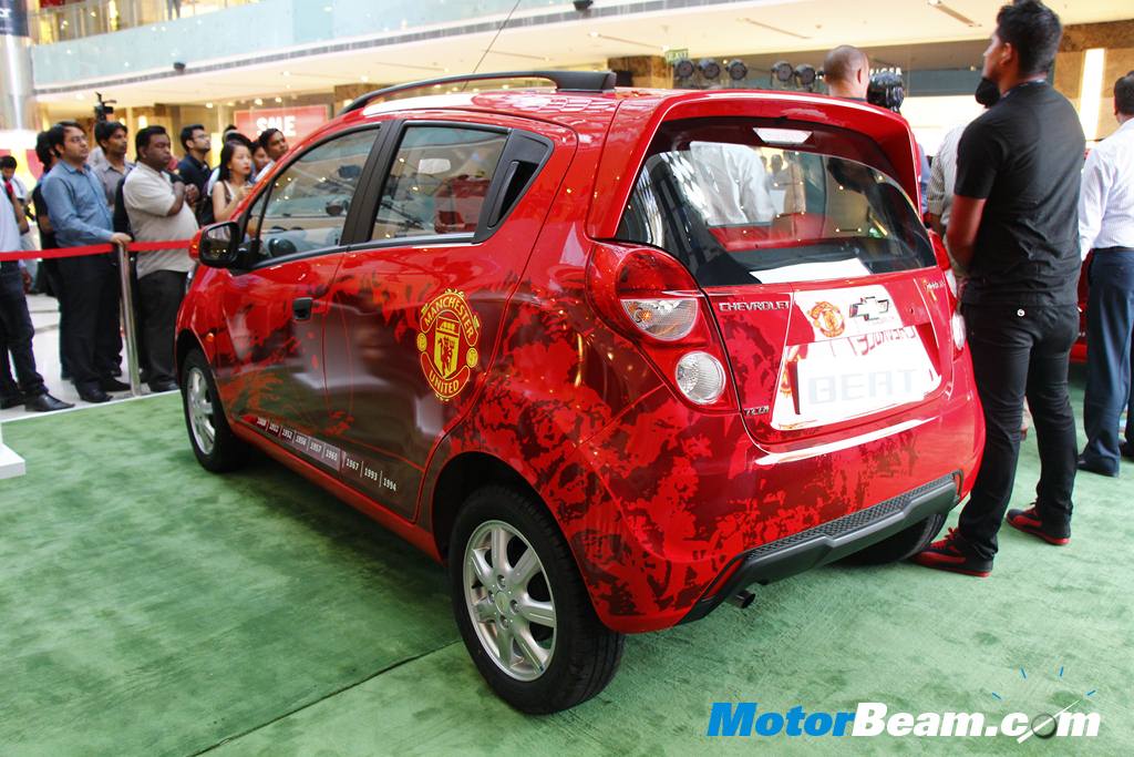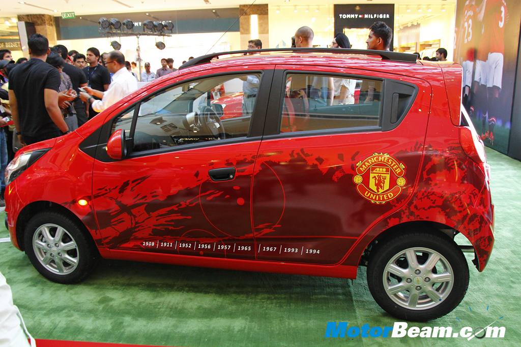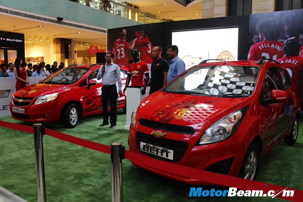 The football fever has engulfed everyone in its path and this time round it is none other than American brand Chevrolet celebrating the sport. General Motors has launched the Beat and Sail U-VA Manchester United Editions in India, sporting the iconic football club’s livery all across the hatchbacks. The Manchester United special edition models are launched at a premium of Rs. 69,000/- and are based on the LS variant. The event coincides with the official unveiling of the new team jersey.