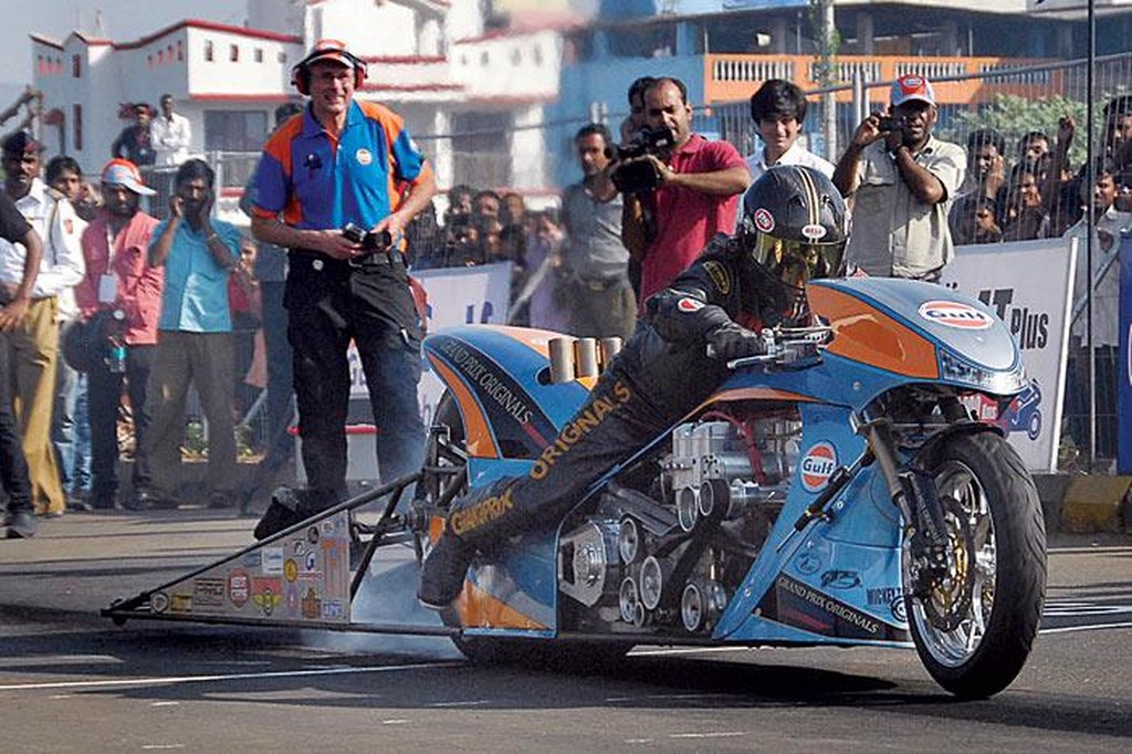 Yes, you read it absolutely right. We are talking about something that is not ordinary but super extra-ordinary! We are talking about the Gulf Top Fuel Drag Bike, or the Gulf Dragster motorcycle commonly referred to. Autocar India was privileged enough to spend some quality time with the bike and we have gathered some useful information related to it. To start off, the dragster bikes are not built for ordinary use or daily use. Instead they are purpose built for covering a certain distance (usually a quarter mile) in blisteringly fast speeds, creating world records of fastest vehicles on the land.