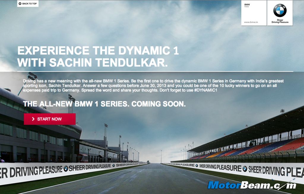 BMW has started a marketing campaign called Dynamic 1, which was carried in newspapers yesterday. The print ad talks about a contest where you answer a few questions on the Dynamics 1 website (HERE) and 10 people are selected. The winners will be flown to Germany for a 3 nights/4 days all expenses paid trip and will drive the BMW 1-Series alongside Sachin Tendulkar (BMW India brand ambassador) and Armaan Ebrahim (FIA GT racer).
