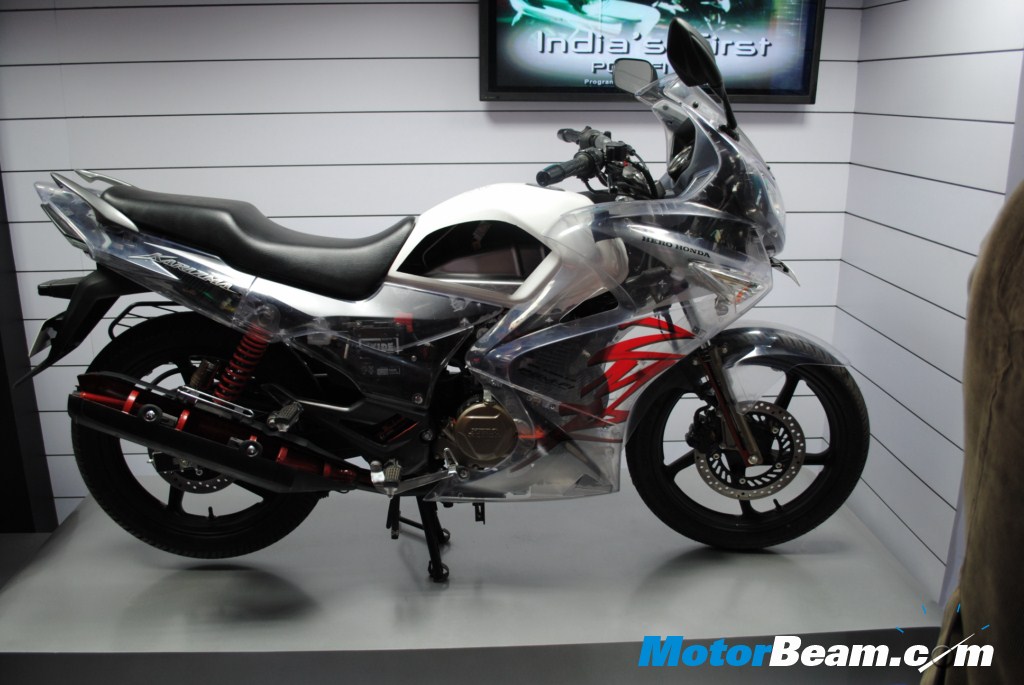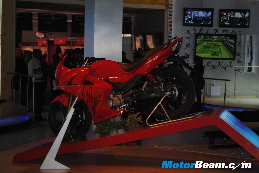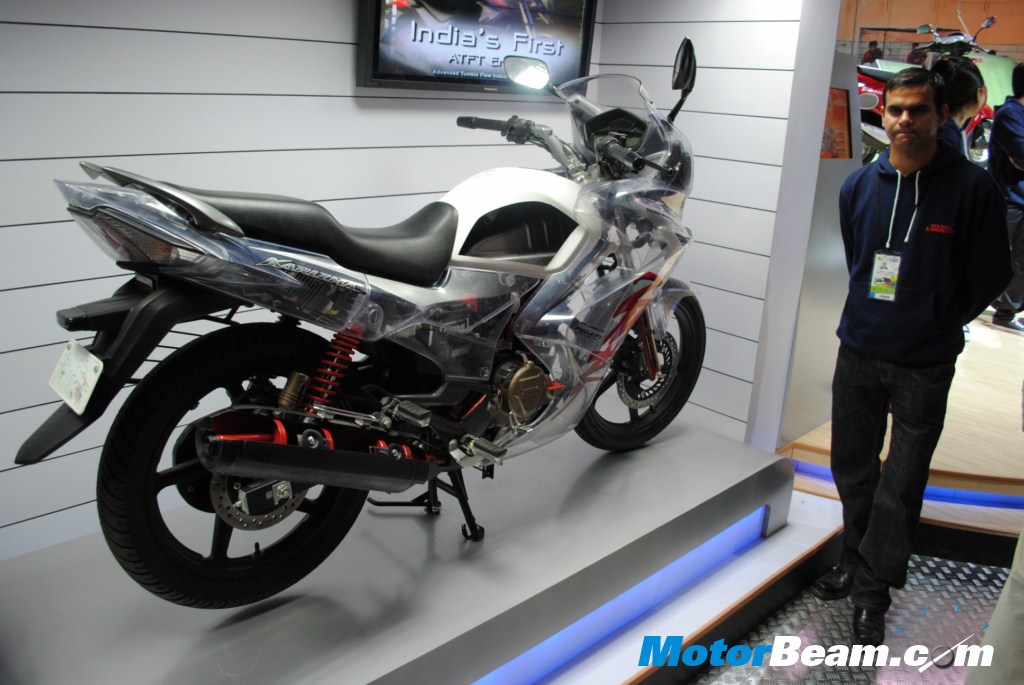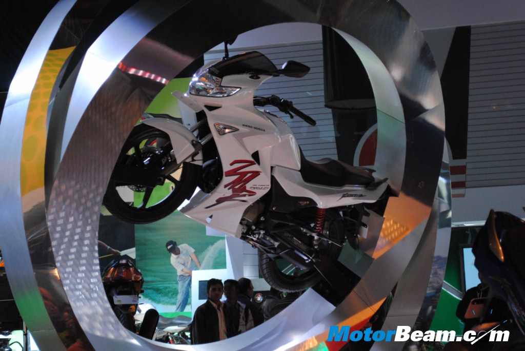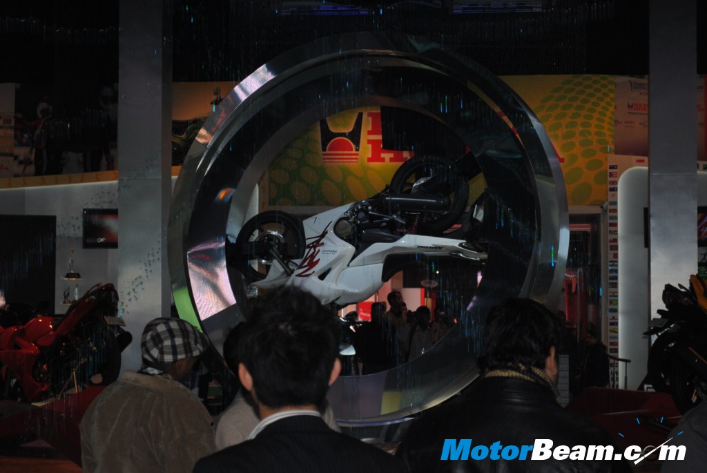 Hero Honda was present with its complete convoy at the Auto Expo 2010. However the main attraction was the company’s flagship model, the Hero Honda ZMR. There were quite a few ZMRs on display with a white one continuously rotating at the center. Also present was a ZMR with transparent body which revealed the mechanicals of the machine. Hero cycles, world cup trophies and engines were also on display. We would have loved to see a new concept but sadly that wasn’t to be. The electric division of Hero launched three new scooters — E-sprint, Zippy and Optima Plus are priced at Rs. 32,470/-, Rs. 17,900/- and Rs. 32,796/-