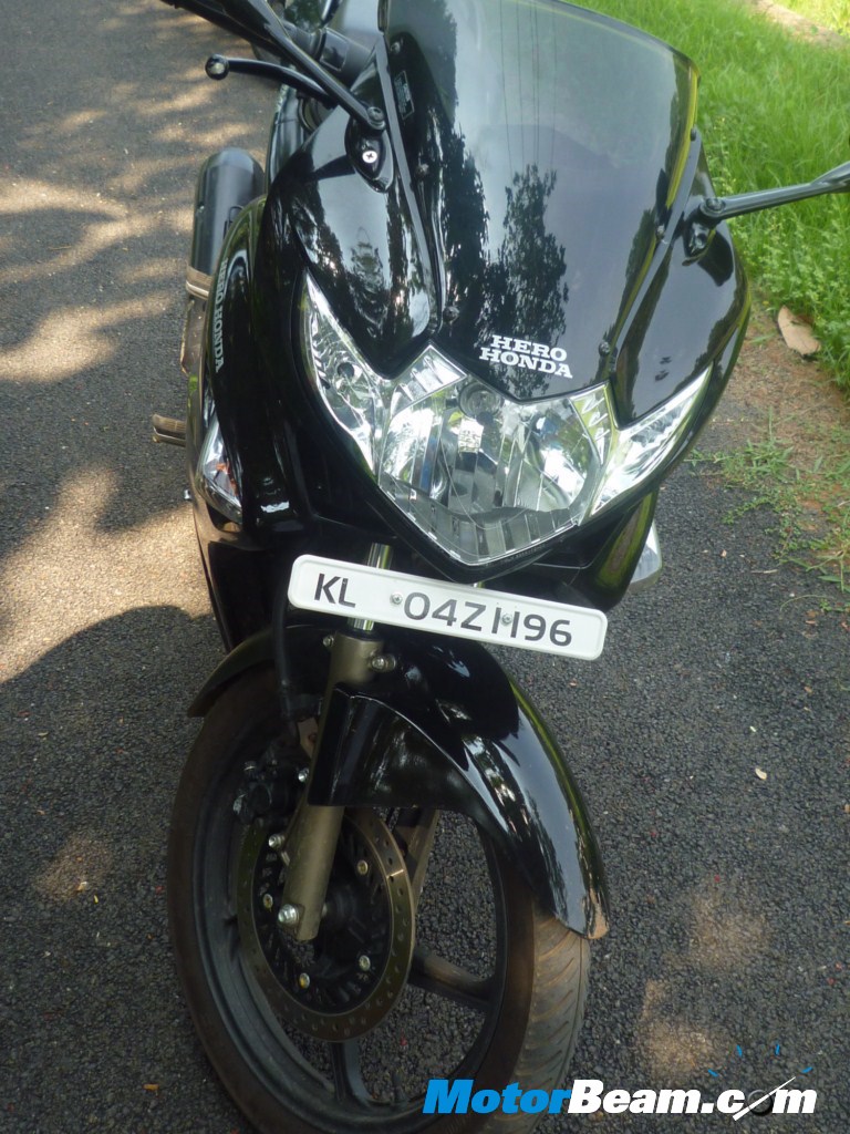 Overall, the features are quite good, if it wasn’t for the slightly thoughtless design of the faring, we would have highly appreciated it, also the fact that Hero Honda have retained the time display in the instrument console shows that they had the old Karizma in mind while on the drawing board.