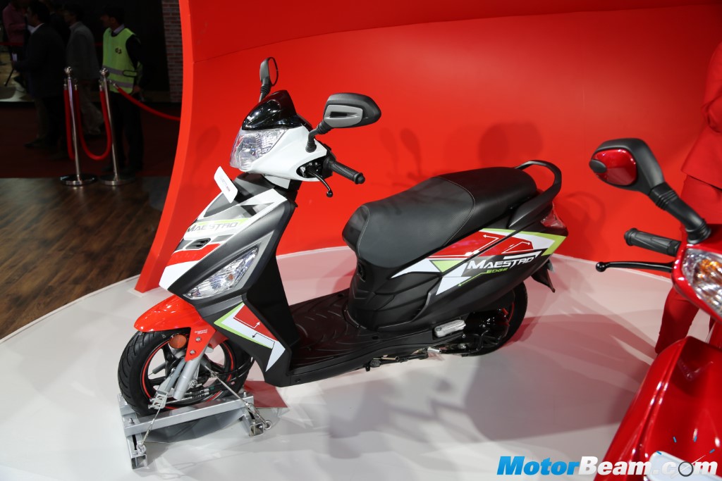 The Hero Maestro Edge was first launched in Columbia as the Hero Dash with the same body graphics, however the Indian market only got the plain colours. The automaker seems to have saved it for showcase at the prestigious Indian motor show. The scooter with new body colours will reach showrooms soon.