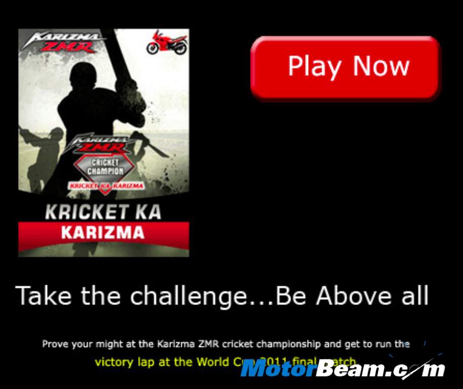 The Cricket World Cup presents a good opportunity for auto companies to create buzz around the product. Taking advantage of the same, Hero Honda has gone ahead and launched a game called Kricket Ka Karizma. The game can be played online as well as on SMS and the person who proves his might at the Karizma ZMR cricket championship will get a chance to run the victory lap at ICC Cricket World Cup 2011 final match. So head over here and become above all.