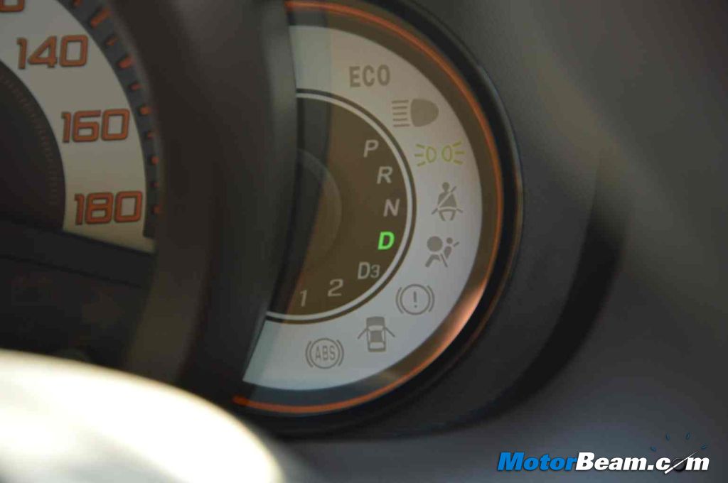 The instrument cluster shows which gear you are in. The Eco lamp works well to indicate whether you are driving in accordance to derive the best fuel economy.
