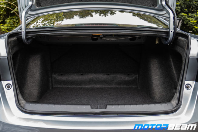 The front seats offer comfort and convenience though they do look slimmer from the naked eye. Jumping onto the backside, the City can easily accommodate three passengers at the back. The middle seat at the rear gets an armrest with twin cup holders. It may get a bit uncomfortable though for the passenger in the middle with the legroom offered, due to the rear ac vents. The car has door pockets with ample space for bottles in case you feel like quenching your thirst in the middle of your journey. There is a good amount of under-thigh support and ample headroom at the rear. The City gets 506 litres of boot space making it 4 litres less than the previous generation. Nevertheless, with a low loading lip, it’s easy to fit in a lot of luggage inside the boot.