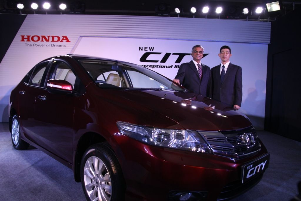 Honda has just launched the 2012 City facelift in India. The company has expanded the City range by offering more variants and at a cheaper price point, enticing buyers to the Honda camp. The changes to the City are purely cosmetic in nature and the car continues to be powered by the same tried and tested, 1.5-liter i-VTEC engine which produces 118 PS of peak power at 6600 RPM and 146 Nm of peak torque at 4800 RPM. The ARAI certified mileage of the City is 16.81 kmpl. The changes to the Honda City include a new chrome grille, restyled front and rear bumpers, 10-spoke alloy wheels, turn indicators on rear view mirrors, new tail lamps, 10-spoke alloy wheels, new center console, new Blue combination meter, new fabric seats, chrome inserts on the dashboard, cruise control, sunroof and leather seats. The 2012 City has an improved ground clearance of 165 mm and is available in two new colours – Pearl Red and Brown Metallic. The City E is dearer by Rs. 20,000/- while other variants have seen a price reduction between Rs. 5000-10,000/-.