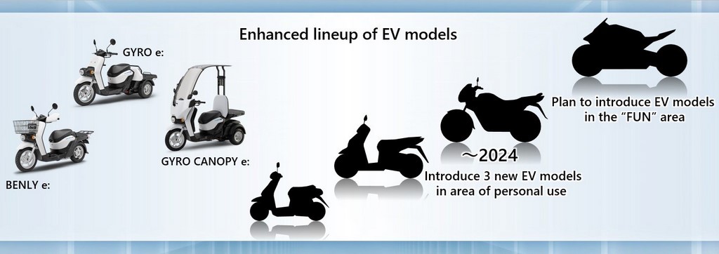 These will join the Gyro e: and Gyro Canopy e: business-use models, while more electric 2-wheelers under what the manufacturer calls the ‘Fun’ segment will also be introduced a bit later.