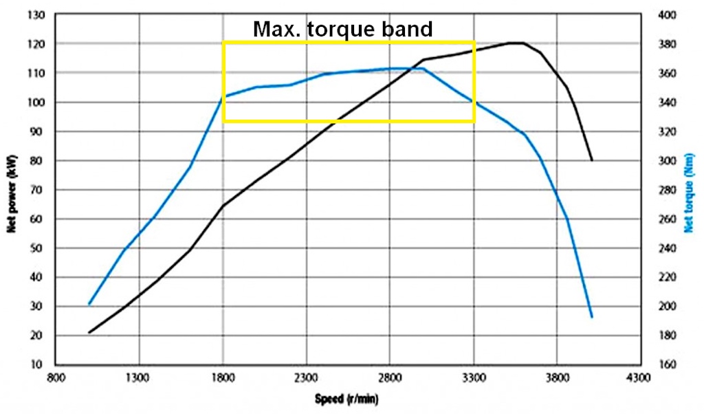 As mentioned above that torque is the pulling capability of a vehicle and the vehicle attains best acceleration when gear shifts are done in the maximum torque band (yellow area).
